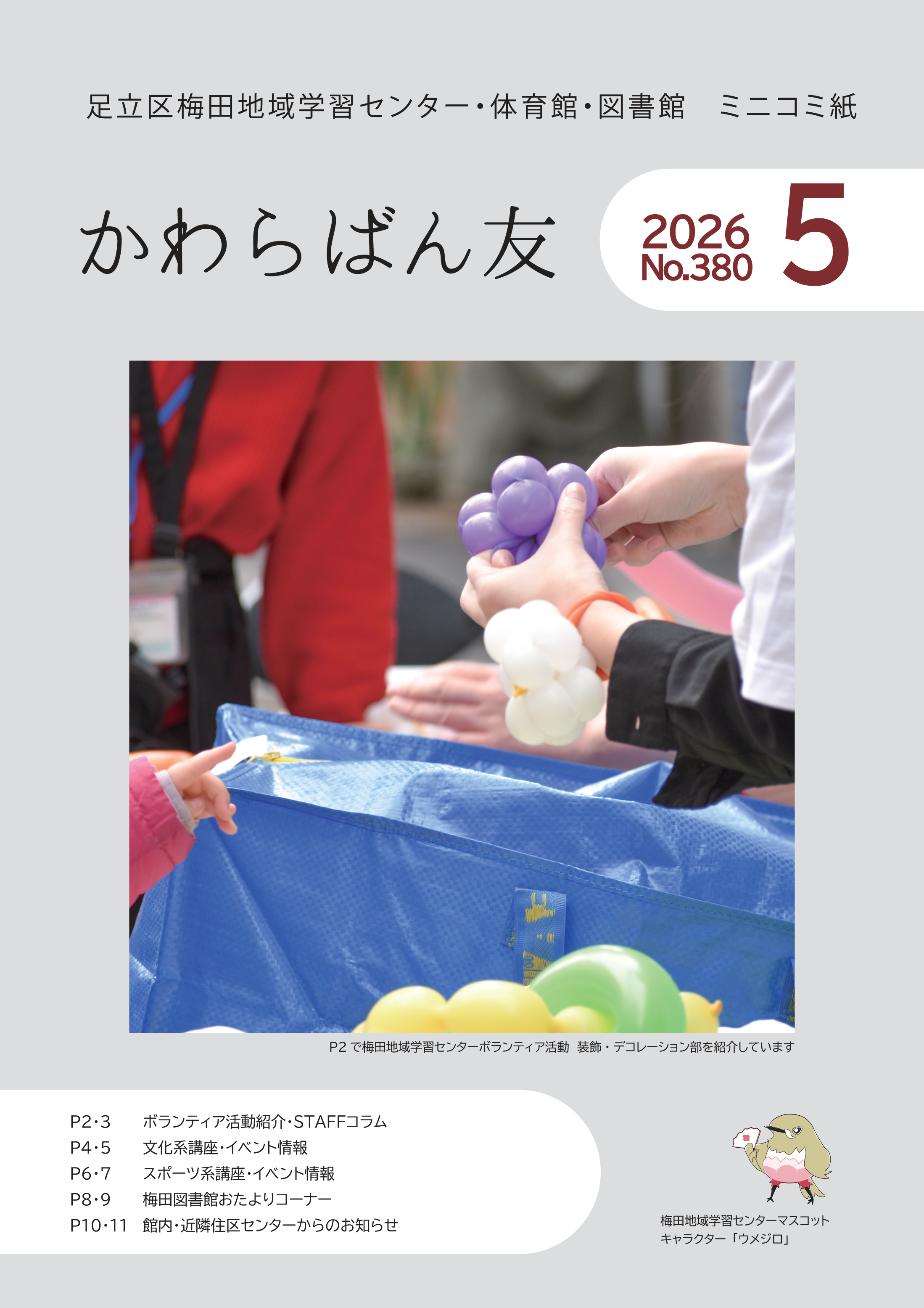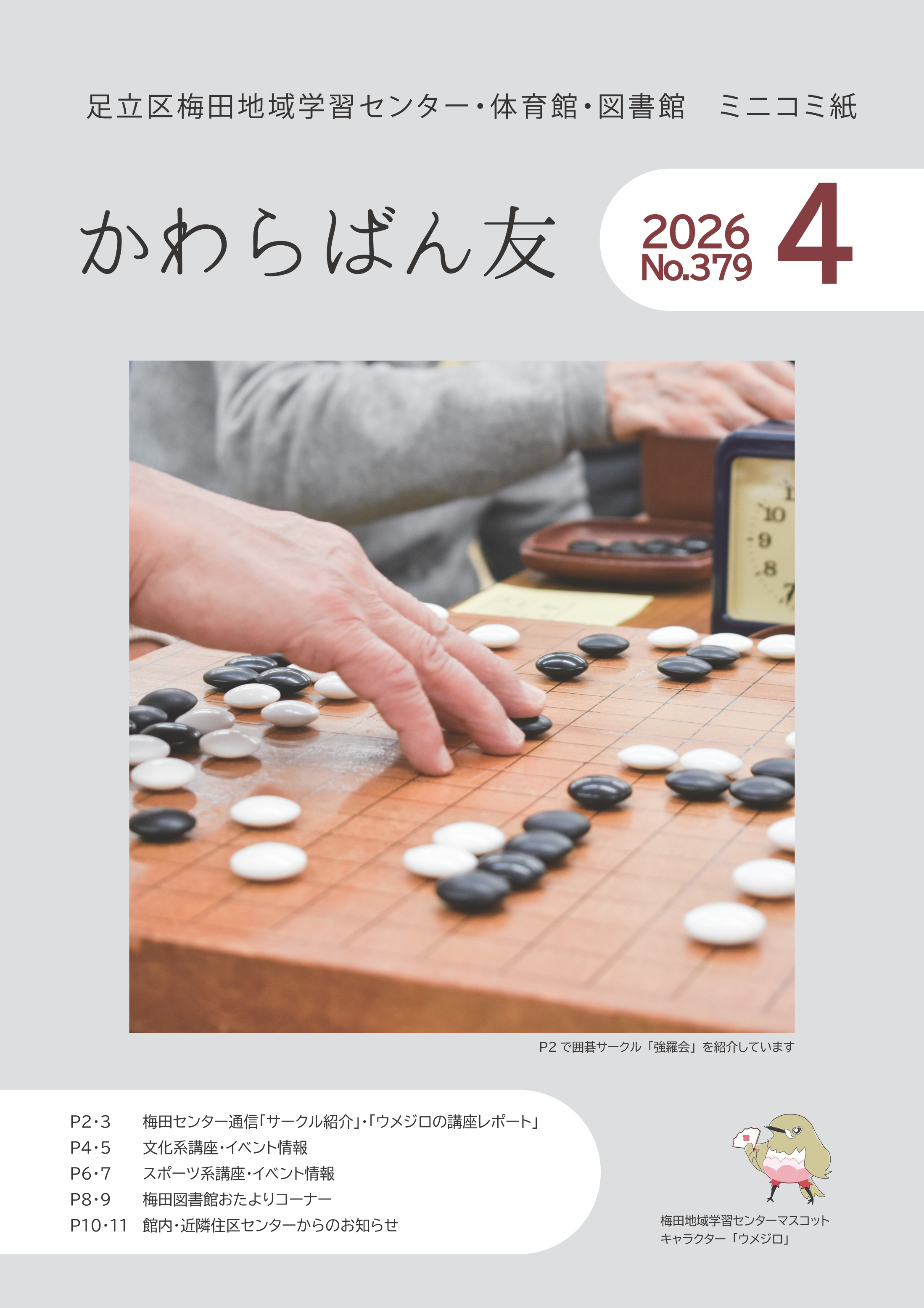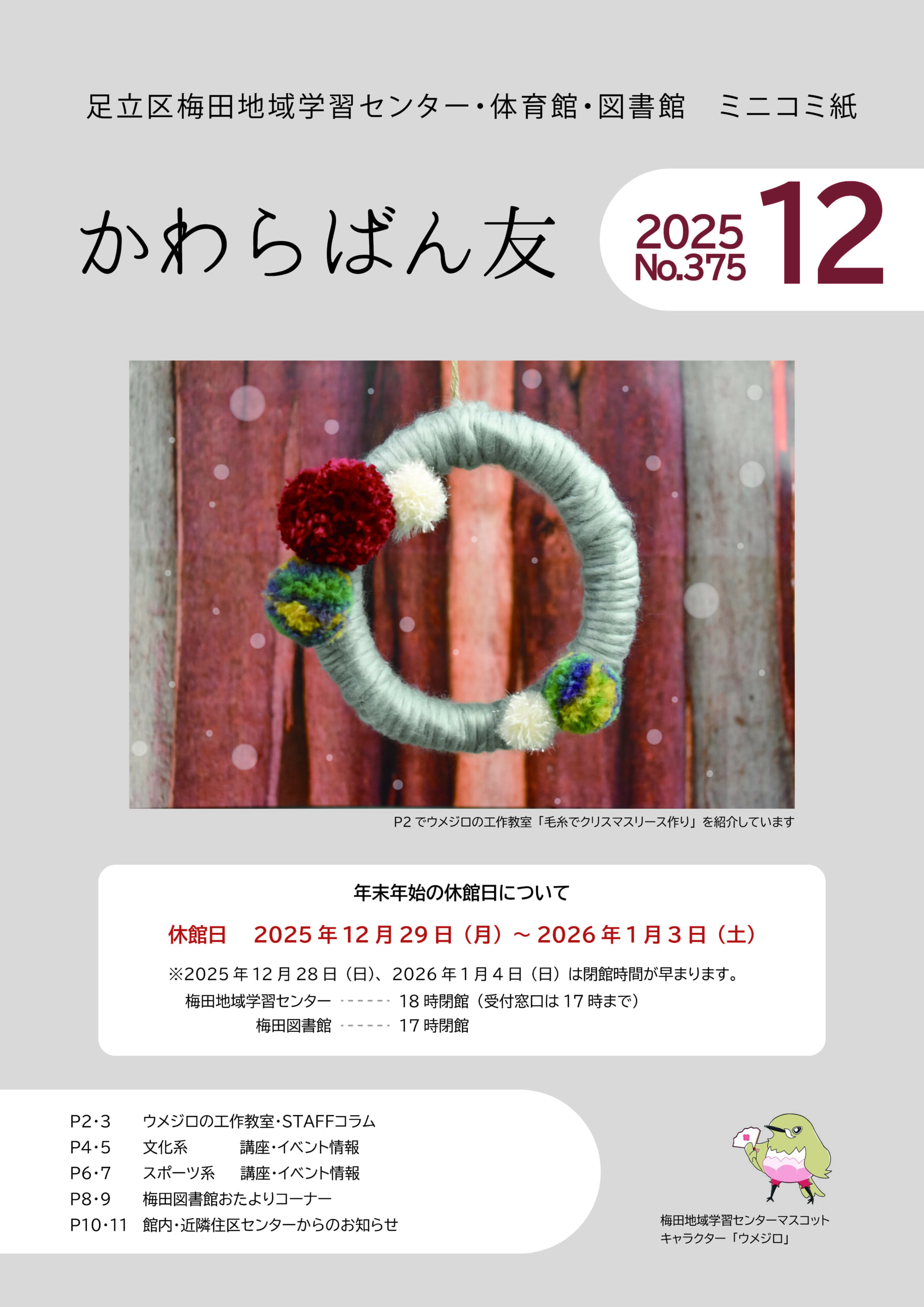 「かわらばん友」は、区民の皆さんと梅田地域学習センターを結ぶコミュニケーション情報紙として、毎月発行しています。これから募集する講座、地域の情報、イベント情報、地域の情報などを満載!