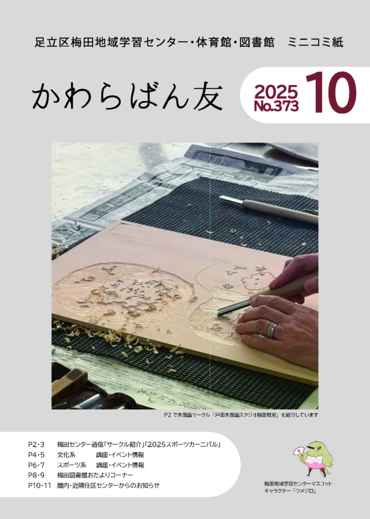 「かわらばん友」は、区民の皆さんと梅田地域学習センターを結ぶコミュニケーション情報紙として、毎月発行しています。これから募集する講座、地域の情報、イベント情報、地域の情報などを満載!